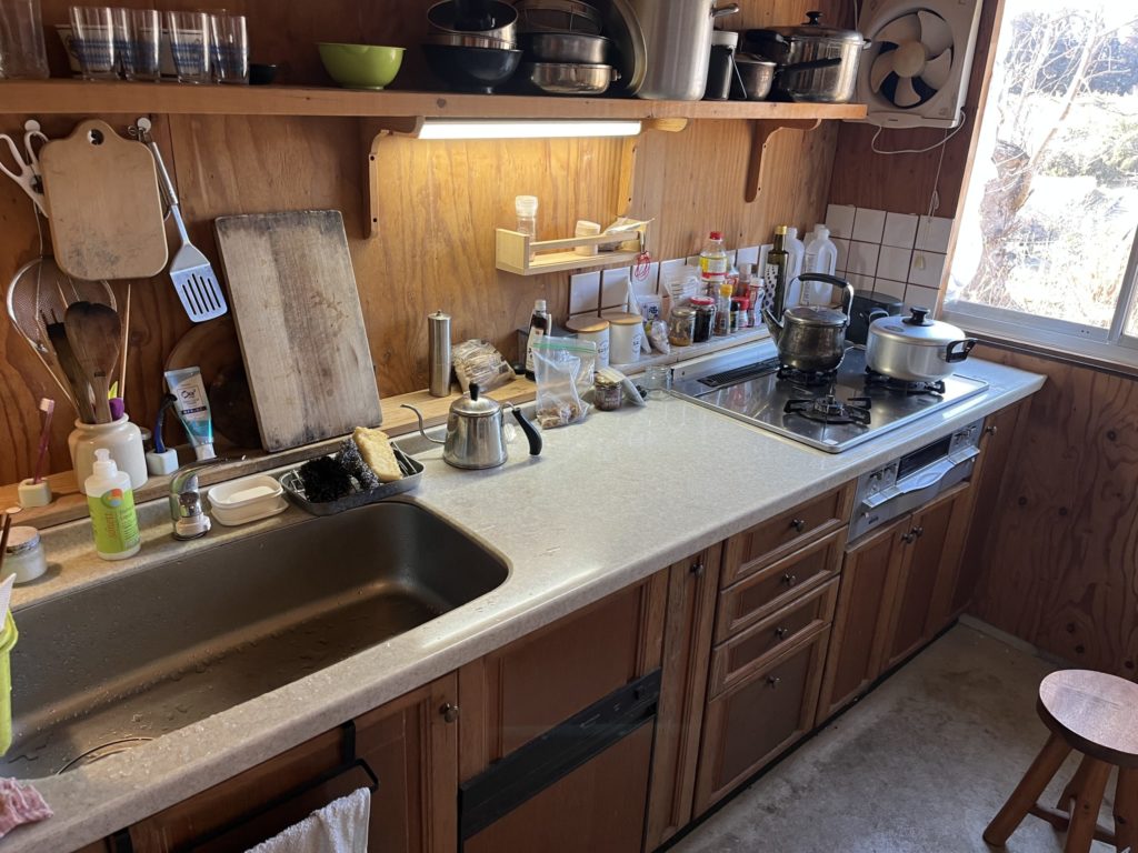 駐車場もあり、古民家を自由に使うことができます(キッチン、土間、休憩部屋、シャワー、トイレあり)。