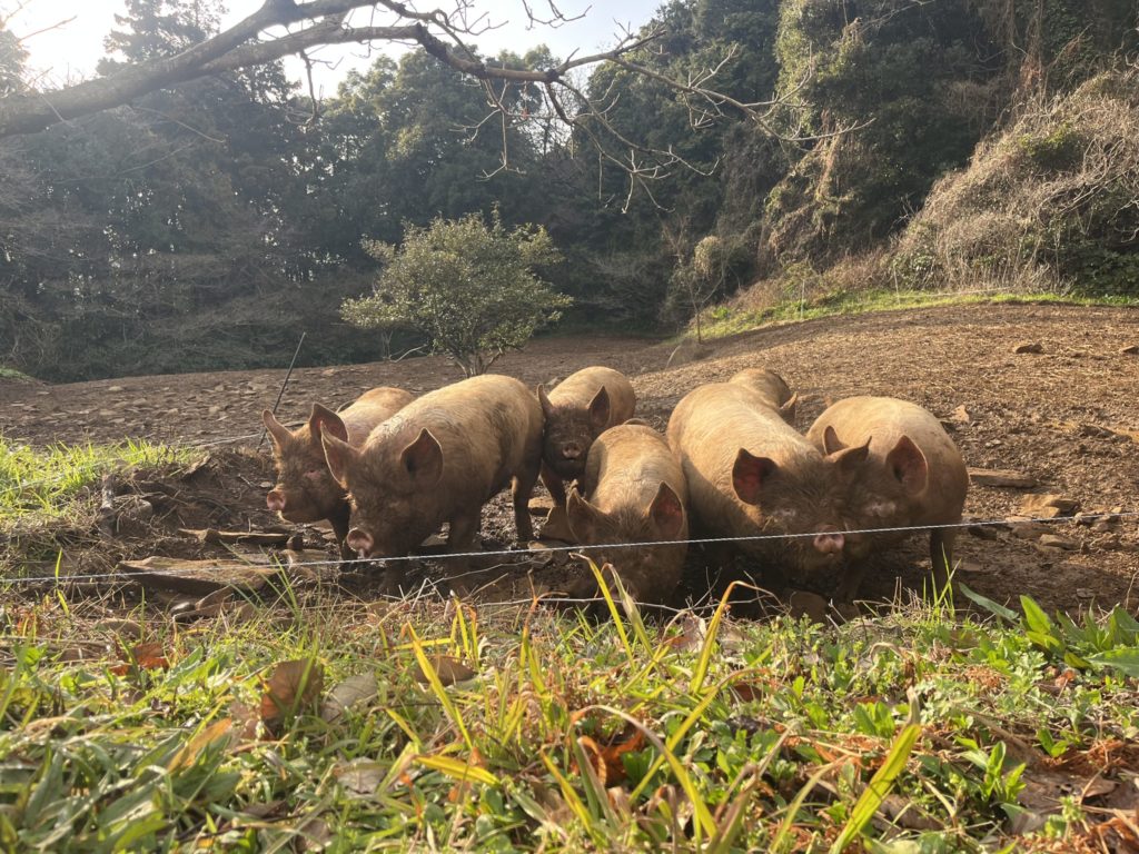 まさに大自然の真ん中で、生きている野草を摘み、生きている豚さん達を眺め、その「いのちをいただく」を実感する回となりました。